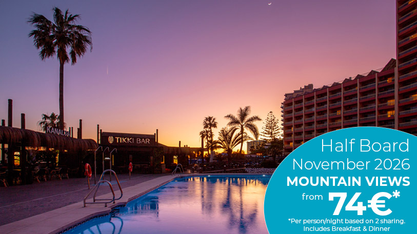 If you are thinking of taking a Winter Sun Break to the Costa del Sol, look no further than Sunset Beach Club! Our new Winter Half Board Rates offer great value for money, and we are conveniently located just 20 minutes from Malaga airport, right on the seafront of Benalmádena Costa.
