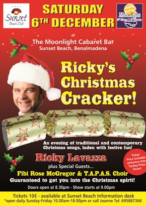 On Saturday 6th December, our resident showman, Ricky Lavazza will be presenting ‘Ricky’s Christmas Cracker’. Those of you who know Ricky, or have seen him perform, will know that he gives it all on stage and this Christmas show will be no exception. An evening of traditional and contemporary Christmas songs, laden with festive fun awaits all who come and join us! (more…)