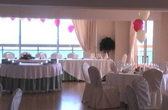 Sala Malaga, our 7th floor banquet room is ready and waiting for tonight’s wedding reception, complete with fuscia table flowers and balloon archways it looks fantastic!