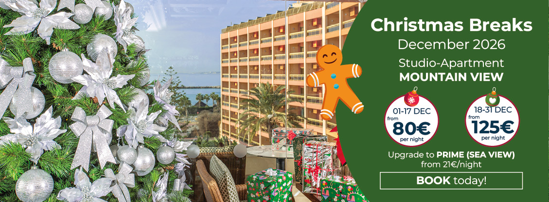 18th - 31st Dec: from 125€* per night for a Studio-apartment (mountain view), which has a bedroom separated from the lounge by sliding doors. Upgrade to PRIME (sea views) from just 31€ per room / night.